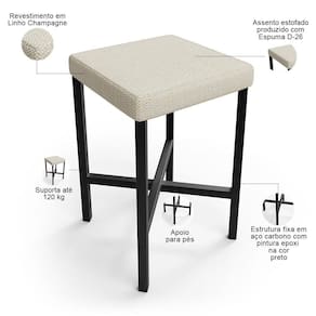 Color: Bege | ColorFamily: Bege | ColorSimple: Bege | ColorSupplier: Champagne | Material: Estrutura de aço carbono, Revestimento em Linho e espuma | MaterialFamily: Aço carbono, linho espuma | Model: Stella | OriginCountry: Nacional | OriginState: PR | ProductContents: 05 Banquetas | ProductHeight: 98 cm | ProductInstructions: Produto para uso em ambiente interno, nao devendo ficar exposto ao sol, calor e umidade excessivos. | ProductLength: 37 cm | ProductWarranty: 90 dias após o recebimento do produto | ProductWeight: 20 kg | ProductWidth: 39 cm | SizeDescription: Altura: 98 cm x Largura: 39 cm x Profundidade: 37 cm | SupplierSimpleName: Kit 05 Banquetas Baixa Bar Cozinha Sala De Jantar Preto Stella L02 Linho Champagne - Lyam Decor