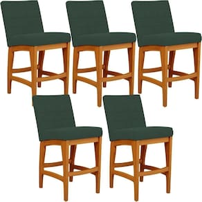 Kit 05 Banquetas Baixa Cozinha Bancada Bar Sala Jantar Fixa Mila L02 Suede Verde Musgo - Lyam Decor