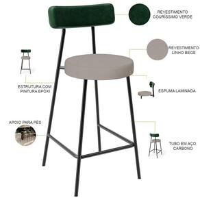 Amplamente moderna, dispondo de muito realce e design singular, o Kit 05 Banquetas Baixa Para Cozinha Sala De Jantar Bar Bancada Milão L02 Facto Verde Musgo Linho Bege - Lyam Decor vem com a personalidade e elegância que sua decoração merece! Estruturada em aço carbono, contrasta lindamente com o encosto e assento estofados, cabe mencionar ainda seu revestimento em Couríssimo, é confeccionada por materiais de excelente qualidade, extremamente resistentes e aconchegantes.