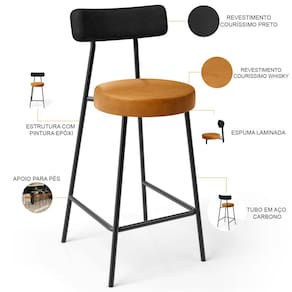 Amplamente moderna, dispondo de muito realce e design singular, o Kit 05 Banquetas Baixa Para Cozinha Sala De Jantar Bar Bancada Milão L02 Couríssimo Preto Brilho Couríssimo Whisky - Lyam Decor vem com a personalidade e elegância que sua decoração merece! Estruturada em aço carbono, contrasta lindamente com o encosto e assento estofados, cabe mencionar ainda seu revestimento em Couríssimo, é confeccionada por materiais de excelente qualidade, extremamente resistentes e aconchegantes.