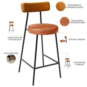 Amplamente moderna, dispondo de muito realce e design singular, o Kit 05 Banquetas Baixa Para Cozinha Sala De Jantar Bar Bancada Milão L02 Couríssimo Whisky Couríssimo Camel - Lyam Decor vem com a personalidade e elegância que sua decoração merece! Estruturada em aço carbono, contrasta lindamente com o encosto e assento estofados, cabe mencionar ainda seu revestimento em Couríssimo, é confeccionada por materiais de excelente qualidade, extremamente resistentes e aconchegantes.