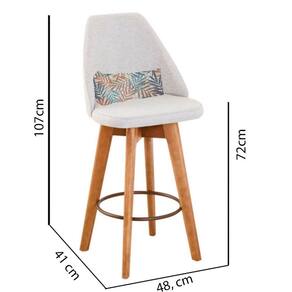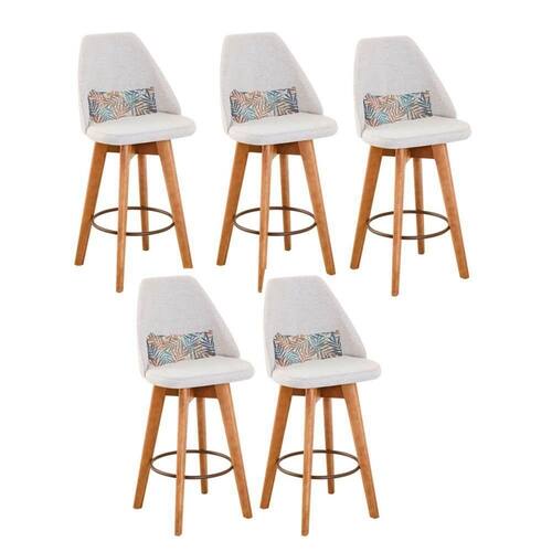 Kit 05 Banquetas Alta Maya Giratória Com Encosto Gourmet Linho Bege E Almofada Folhas - Gat Magazine