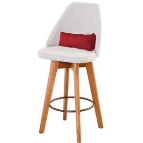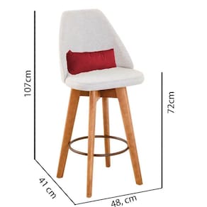 Kit 05 Banquetas Alta Maya Giratória Com Encosto Gourmet Linho Bege E Almofada Sintético Vermelho - Gat Magazine