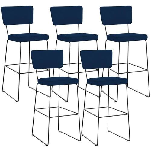 O espetáculo que é o Kit 05 Banquetas Alta Bar Cozinha Sala De Jantar Fixa Allana L02 Suede Azul Marinho - Lyam Decor vem para agregar ainda mais valor na decoração da sua casa. Sua estrutura em aço remete-nos ao estilo industrial que surgiu em Nova York no século XX, já o assento e encosto estofados trazem equilíbrio e conforto criando a combinação perfeita para o ambiente. Podendo ser disposta em bancada, cozinha americana, espaço gourmet ou home bar, ela se destaca com muita elegância e presença. Conta com materiais de máxima qualidade e está sempre pronta para recepcionar família e amigos de forma agradável. Você e seu lar merecem, aproveite!!