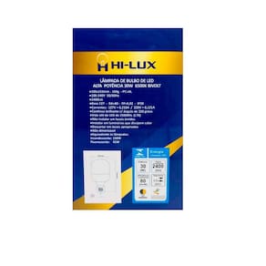 ESPECIFICAÇÕES - Índice de proteção: IP20 - Tensão: Bivolt Automático 100V - 240V - Ângulo de abertura: 220º - IRC**: >80 - Vida útil: 25.000 horas - Potência: 30W - Fluxo luminoso: 2400 lumens - Base: E27 - Temperatura de cor: 6500K (Branca) - Eficiência luminosa: 80lm/W -Dimensão (mm): 100mm x 153mm - Equivalência: Incandescente 150W / Fluorescente 41W