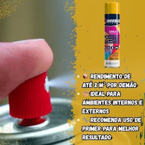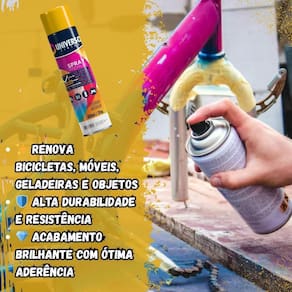 Tinta Spray 400ml Amarelo Uso Geral em Aço Ferro Couro Gesso Cerâmica A Tinta Spray 400ml Amarelo Uso Geral é a solução prática para renovar superfícies de metal, gesso, couro e cerâmica. Ideal para dar vida nova a bicicletas, móveis, eletrodomésticos e objetos em geral, garantindo um acabamento moderno e duradouro. Com fórmula de alta qualidade, oferece excelente aderência e acabamento Brilhante, além de resistência superior contra desgastes do dia a dia. Sua cobertura uniforme realça os detalhes e proporciona um resultado em poucas camadas. Prática e fácil de aplicar, a tinta spray seca ao toque em apenas 15 minutos, permitindo agilidade nos trabalhos e economia de tempo. O rendimento de até 2 m por demão garante maior aproveitamento do produto e ótimo custo-benefício. Diferenciais: Acabamento Brilhante com ótima aderência Alta durabilidade e resistência em ambientes internos e externos Secagem rápida e aplicação prática com cobertura uniforme Especificações TÉCNICAS: Volume: 400ml Rendimento: até 2 m por demão Superfícies indicadas: metal, gesso, couro e cerâmica Secagem: toque em 15 minutos Acabamento: Brilhante Recomendação: uso de primer para melhor desempenho Itens INCLUSOS: 05 Tintas Spray 400ml Amarelo Uso Geral Marca: Não Informado