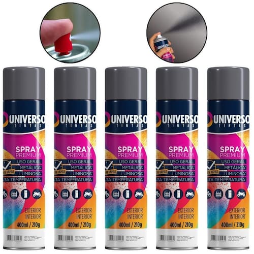 Kit 05 Latas Tinta Spray Cinza Grafite 400Ml Uso Geral