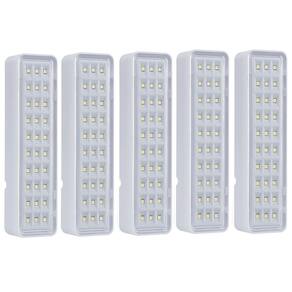 Especificações técnicas - Valor referente a 05 unidades - Aplicação Ambiente interno - Autonomia 6 horas fluxo mínimo / 3 horas fluxo máximo - Fluxo luminoso 55 lumens fluxo mínimo / 100 lumens fluxo máximo Bateria de íon-lítio 3,7 Vdc 1 Ah - Tempo de carga 24h 220 V / 48h 127 V - Tensão de alimentação 100 a 240 Vac 50/60 Hz - Peso 94 g - Ideal para ambiente de até 30m - Autonomia de até 6 horas - Bateria de lítio - Botão de teste - Chave seletora - Sistema antifurto - Kit completo para instalação - Dimensão Embalagem L A P 160 41 25,6 mm