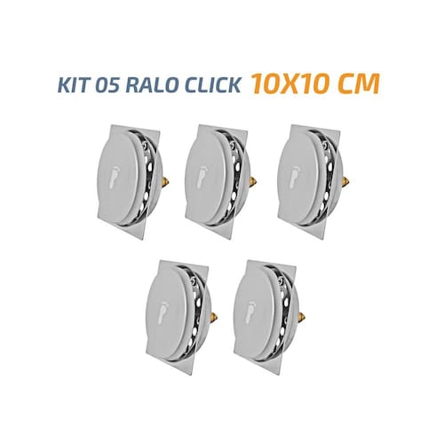 Kit 05 Unidades Ralo Click 10x10 Cm Ralo click com sistema abre e fecha, sistema inteligente; Evita que o odor passa para o ambiente; Compátivel com todas as marcas de porta grelha do mercado; Abre e fecha apenas com o pisar; INFORMAÇÕES TÉCNICAS Produto: Ralo Click Quadrado Inteligente 10x10 CM; Dimensões: 9,5 x 9,5 CM; Material: Liga de Cobre Inoxidável; Acionamento: Click; : 03 Meses; Marca: Não Informado Ean: 7898384762712