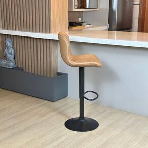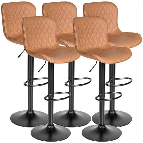 Aço em Preto Fosco, Madeira Compensada Estofada Revestida em Material SintéticoKit 05 Un Banqueta Alta Para Cozinha Americana Bar Giratória Caramelo - P080