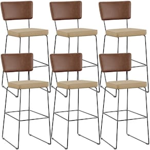 O espetáculo que é o Kit 06 Banqueta Alta Cozinha Sala Jantar Allana L02 Couríssimo Marrom Linho Bege Escuro - Lyam Decor vem para agregar ainda mais valor na decoração da sua casa. Sua estrutura em aço remete-nos ao estilo industrial que surgiu em Nova York no século XX, já o assento e encosto estofados trazem equilíbrio e conforto criando a combinação perfeita para o ambiente.