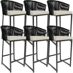 Kit 06 Banqueta Para área Gourmet Cozinha Varanda Corda Náutica Sunset D04 Preto - Lyam Decor