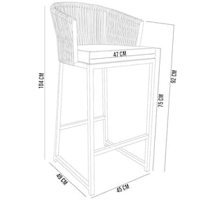 O Kit de Banquetas Sunset é uma peça ideal para decorar e dispor de conforto e comodidade nos momentos de lazer. O destaque aqui vai para o design artesanal com materiais de altíssima qualidade, como a corda náutica que é um material extremamente elegante na fabricação de móveis para área externa, pela sua beleza, resistência e durabilidade, ou seja, sem erro para criar desde uma decoração simples até uma mais o e cheia de personalizações. Pode ser perto da piscina, no jardim, sala de estar, varanda e onde mais sua criatividade desejar! Garanta já a sua! Dimensões do Produto (L x A x P) 45 x 104 x 49 cm Medidas Internas: Altura do chão ao assento: 75 cm Altura do chão ao braço: 92 cm Largura do assento:47 cm Características: Estrutura em alumínio. Assento revestido com tecido acquablock. Acabamento em pintura eletrostática a pó na cor Preto, de alta resistência, sendo indicado também para áreas litorâneas. Cordas náuticas produzida com fios de polipropileno na cor Preto. Ponteiras em polietileno injetadas com borda interna para evitar acúmulo de água. Espessura da estrutura: 1,6 mm Suporta até 115 kg. - A tonalidade do produto real poderá ter ligeira variação devido o lote de tecidos. - A limpeza deve ser feita com pano levemente umedecido em água limpa, sem esfregar, não utilizar produtos abrasivos, desengordurantes, álcool ou solvente. - O produto tem aditivo anti enxofre que o torna mais resistente, mas não é recomendada a exposição por tempo indefinido ao sol, chuva, sereno e maresia. - A exposição prolongada ao sol ou maresia, pode ca desbotamento precoce da corda náutica. Observações importantes: - Produto para em ambiente interno e externo, não devendo ficar exposto diretamente ao sol, calor e umidade excessivos. - Pode haver alguma diferença de tonalidade entre a imagem e o produto real, por conta do tratamento de imagens e a calibração de cores do seu monitor. - As imagens são meramente ilustrativas, não acompanham objetos de decoração e eletrônicos. - Ao receber a mercadoria, o cliente deve verificar as condições da embalagem, caso haja alguma não assine o comprovante de recebimento. - Montagem, desmontagem e outras instalações serão de responsabilidade do cliente. Não nos responsabilizamos, no ato da , por subir escadas/elevadores ou pelo transporte por guincho em apartamentos. Eventuais despesas são de responsabilidade do comprador. - Confira as dimensões do produto e certifique-se de que passará normalmente por supostos elevadores, portas, escadas e/ou corredores de sua residência. NA