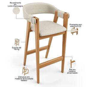 A Banqueta Alta Nadja da Lyam Decor, é a escolha perfeita para criar uma sala de jantar moderna e acolhedora. Com seu design curvo e pés de madeira maciça envernizada, essa banqueta estofada traz elegância e sofisticação ao ambiente. Além disso, é tapeçada com espuma d-26, o que proporciona um conforto excepcional, permitindo que você desfrute de momentos incríveis à mesa. Já o design orgânico combina beleza e modernidade, tornando-a uma peça única, enquanto os braços adicionam um toque extra de conforto e estilo. A Banqueta Nadja é o equilíbrio perfeito entre funcionalidade e design, uma vez que pode facilmente ser utilizada em diversos ambientes, como área gourmet, cozinhas, bancadas e até em eventos eventos. Adicione esse elemento indispensável à sua decoração e transforme qualquer ambiente em um lugar especial. Não perca a oportunidade de adquirir essa banqueta alta que vai encantar a todos.