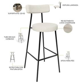 Amplamente moderna, dispondo de muito realce e design singular, O Kit 06 Banquetas Altas Bar Cozinha Sala De Jantar Estrutura Em Aço Milão L02 Linho Champagne - Lyam Decor vem com a personalidade e elegância que sua decoração merece! Estruturada em aço carbono, contrasta lindamente com o encosto e assento estofados, cabe mencionar ainda seu revestimento em Linho, é confeccionada por materiais de excelente qualidade, extremamente resistentes e aconchegantes. Possui altura ideal, garantindo o encaixe perfeito no ambiente, otimizando seu espaço e promovendo máximo conforto. Pode ser disposta em bancada, cozinha americana, área gourmet ou home bar, as possibilidades são infinitas e as combinações ficarão perfeitas. Adquira já a sua!!