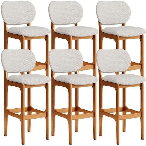 Amplamente sofisticada, o Kit 6 Banquetas Alta Para Cozinha Fixa Betta L02 Imbuia Bouclê Cru - Lyam Decor irá agregar ainda mais valor em sua decoração!! Sendo capaz de compor muito bem o ambiente, é produzida com materiais de excelente qualidade, a resistente estrutura em madeira de Taeda, na cor imbuia, conta com apoio para os pés (que garante maior segurança), além do assento e encosto estofados super confortáveis e convidativos, que são revestidos em tecido Bouclê, extremamente elegante.