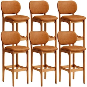 Kit 06 Banquetas Alta Bar Cozinha Sala Jantar Fixa Betta L02 Imbuia Couríssimo Canela - Lyam Decor