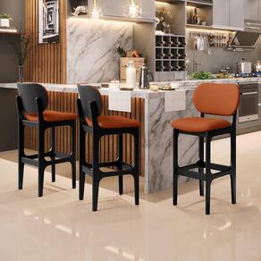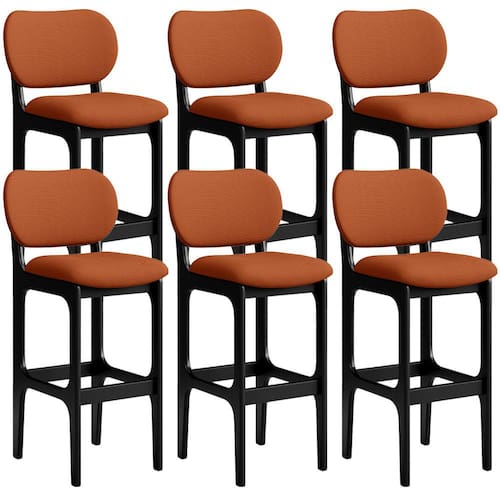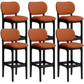 Amplamente sofisticada, o Kit 06 Banquetas Alta Bar Cozinha Sala Jantar Fixa Betta L02 Preto Tecido Terracota - Lyam Decor irá agregar ainda mais valor em sua decoração!! Sendo capaz de compor muito bem o ambiente, é produzida com materiais de excelente qualidade, a resistente estrutura em madeira de Taeda, na cor preto, conta com apoio para os pés (que garante maior segurança), além do assento e encosto estofados super confortáveis e convidativos, que são revestidos em tecido terracota, extremamente elegante.