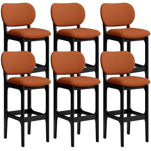 Amplamente sofisticada, o Kit 06 Banquetas Alta Bar Cozinha Sala Jantar Fixa Betta L02 Preto Tecido Terracota - Lyam Decor irá agregar ainda mais valor em sua decoração!! Sendo capaz de compor muito bem o ambiente, é produzida com materiais de excelente qualidade, a resistente estrutura em madeira de Taeda, na cor preto, conta com apoio para os pés (que garante maior segurança), além do assento e encosto estofados super confortáveis e convidativos, que são revestidos em tecido terracota, extremamente elegante.