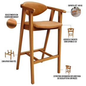 A melhor escolha para os momentos de confraternização no aconchego da sua casa, acaba de chegar! O Kit 06 Banquetas Alta Para Cozinha Sala de Jantar Fixa Cecília L02 Couríssimo Whisky - Lyam vem com a personalidade e elegância que sua decoração merece! É ideal desde refeições rápidas, até um Happy Hour com os amigos, família. Seu design único valoriza o ambiente, sem deixar pra trás a beleza e qualidade! Para deixar a sua área gourmet mais aconchegante, ela possui assento e encosto estofados, confeccionados com materiais de excelente qualidade, e extremamente resistentes.