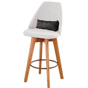 Kit 06 Banquetas Alta Maya Giratória Com Encosto Gourmet Linho Bege e Almofada Sintético Cinza - Aurora Line - Blush