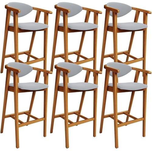 A melhor escolha para os momentos de confraternização no aconchego da sua casa, acaba de chegar! O Kit 06 Banquetas Alta Para Cozinha Bancada Bar Sala de Jantar Fixa Cecília L02 Suede Cinza - Lyam vem com a personalidade e elegância que sua decoração merece! É ideal desde refeições rápidas, até um Happy Hour com os amigos, família. Seu design único valoriza o ambiente, sem deixar pra trás a beleza e qualidade! Para deixar a sua área gourmet mais aconchegante, ela possui assento e encosto estofados, confeccionados com materiais de excelente qualidade, e extremamente resistentes.