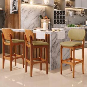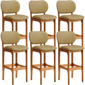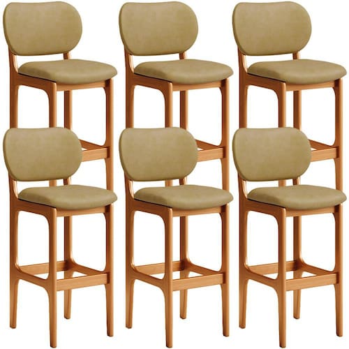 Amplamente sofisticada, o Kit 06 Banquetas Alta Bar Cozinha Sala Jantar Fixa Betta L02 - Lyam Decor irá agregar ainda mais valor em sua decoração!! Sendo capaz de compor muito bem o ambiente, é produzida com materiais de excelente qualidade, a resistente estrutura em madeira de Taeda, na cor imbuia, conta com apoio para os pés (que garante maior segurança), além do assento e encosto estofados super confortáveis e convidativos, que são revestidos em couríssimo, extremamente elegante. Podendo ser disposta em bancada, cozinha americana, espaço gourmet ou home bar, as possibilidades de combinação são infinitas, o que a torna perfeita para receber família e amigos sempre de forma agradável e aconchegante, sem perder a sobriedade e requinte que possui. Você e seu lar merecem, adquira já a sua!!