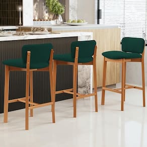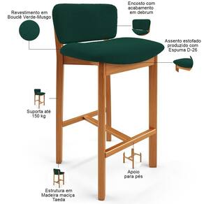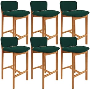 Kit 06 Banquetas Alta Para Cozinha Sala De Jantar Bar Dara L02 Bouclê Verde Musgo - Lyam Decor