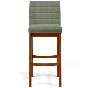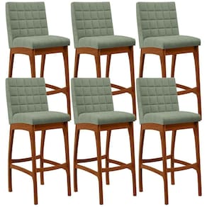 ndo muita excelência, a Banqueta Alta Para Cozinha Sala De Jantar Fixa Mila B04 Bouclê Oliva - Lyam Decor é o complemento que faltava para deixar sua casa ainda mais extraordinária. Seu encosto com costura em padrão quadriculado e assento estofados, centralizam em si uma graciosidade estonteante, sem perder todo o conforto, sendo revestidos pelo riquíssimo tecido em bouclê que por si só já é um espetáculo. A estrutura em madeira, na cor nozes, também é digna de notoriedade, por imprimir bastante personalidade a sua decoração. Vale ressaltar ainda, o apoio para os pés que garante maior segurança à mesma.