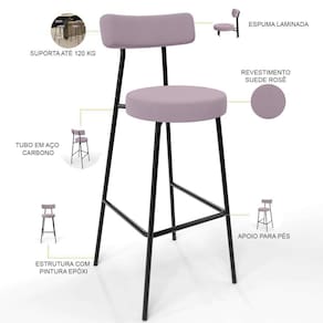 Amplamente moderna, dispondo de muito realce e design singular, a Banqueta Alta Bar Cozinha Sala De Jantar Estrutura Em Aço Milão L02 Suede Rosê - Lyam Decor vem com a personalidade e elegância que sua decoração merece! Estruturada em aço carbono, contrasta lindamente com o encosto e assento estofados, cabe mencionar ainda seu revestimento em Linho, é confeccionada por materiais de excelente qualidade, extremamente resistentes e aconchegantes.