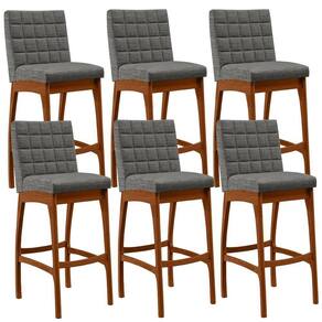 ndo muita excelência, a Kit 06 Banquetas Altas Para Cozinha Sala de Jantar Fixa Mila B04 Linho Cinza Escuro - Lyam Decor é o complemento que faltava para deixar sua casa ainda mais extraordinária. Seu encosto com costura em padrão quadriculado e assento estofados, centralizam em si uma graciosidade estonteante, sem perder todo o seu conforto. A estrutura em madeira, na cor nozes, também é digna de notoriedade, por imprimir bastante personalidade a sua decoração. Vale ressaltar ainda, o apoio para os pés que garante maior à mesma.