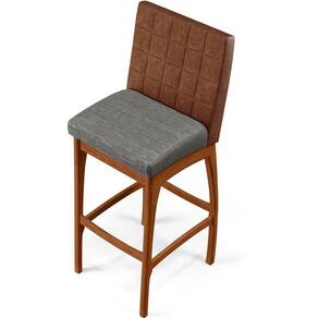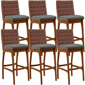 ndo muita excelência, o Kit 06 Banquetas Altas Sala Jantar Fixa Mila B04 Couríssimo Marrom Linho Cinza Escuro - Lyam Decor é o complemento que faltava para deixar sua casa ainda mais extraordinária. Seu encosto com costura em padrão quadriculado e assento estofados, centralizam em si uma graciosidade estonteante, sem perder todo o conforto. A estrutura em madeira, na cor nozes, também é digna de notoriedade, por imprimir bastante personalidade a sua decoração. Vale ressaltar ainda, o apoio para os pés que garante maior à banqueta.
