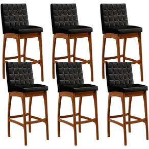 ndo muita excelência, a Kit 06 Banquetas Altas Para Cozinha Sala de Jantar Fixa Mila B04 Couríssimo Preto - Lyam Decor é o complemento que faltava para deixar sua casa ainda mais extraordinária. Seu encosto com costura em padrão quadriculado e assento estofados, centralizam em si uma graciosidade estonteante, sem perder todo o seu conforto. A estrutura em madeira, na cor nozes, também é digna de notoriedade, por imprimir bastante personalidade a sua decoração. Vale ressaltar ainda, o apoio para os pés que garante maior segurança à mesma.