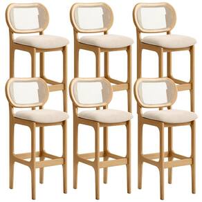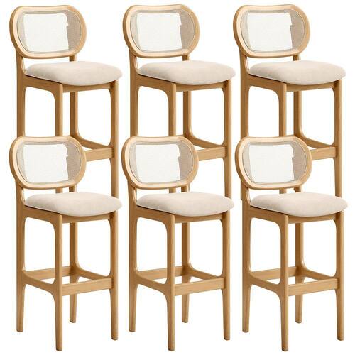Kit 06 Banquetas Altas Para Cozinha Bancada Sala Tela Betta Fixa L02 Suede Bege - Lyam