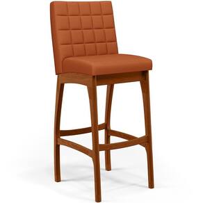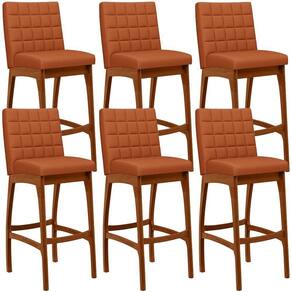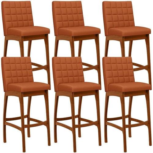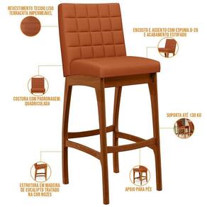 ndo muita excelência, o Kit 06 Banquetas Altas Para Cozinha Sala De Jantar Fixa Mila B04 Tecido Terracota - Lyam Decor é o complemento que faltava para deixar sua casa ainda mais extraordinária. Seu encosto com costura em padrão quadriculado e assento estofados, centralizam em si uma graciosidade estonteante, sem perder todo o conforto. A estrutura em madeira, na cor nozes, também é digna de notoriedade, por imprimir bastante personalidade a sua decoração. Vale ressaltar ainda, o apoio para os pés que garante maior à mesma. Pode ser acomodado em cozinha americana, ambientes integrados, espaços gourmets, bancadas ou em seu home bar, independente do lugar, desperta logo de cara bastante elegância e deixa tudo mais despojado, perfeita para criar um ambiente harmonioso e agradável para receber a família e amigos, quando favorável. Não perca tempo e adquira já a sua!!