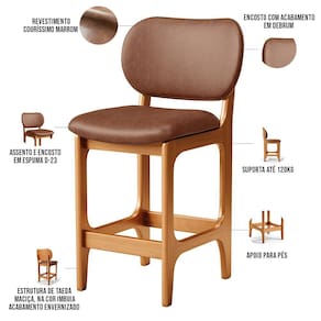 Amplamente sofisticada, o Kit 06 Banquetas Baixa Bar Cozinha Sala Jantar Betta L02 Imbuia Couríssimo Marrom - Lyam Decor irá agregar ainda mais valor em sua decoração!! Sendo capaz de compor muito bem o ambiente, é produzida com materiais de excelente qualidade, a resistente estrutura em madeira de Taeda, na cor imbuia, conta com apoio para os pés (que garante maior segurança), além do assento e encosto estofados super confortáveis e convidativos, que são revestidos em tecido Couríssimo, composição extremamente elegante.