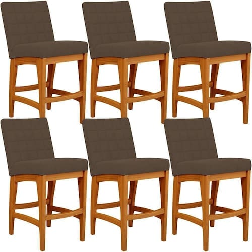 Entregando muita excelência, o Kit 06 Banquetas Baixa Para Cozinha Bancada Bar Sala De Jantar 90 cm Fixa Mila L02 Suede Marrom - Lyam Decor é o complemento que faltava para deixar sua casa ainda mais extraordinária. Seu encosto com costura em padrão quadriculado e assento estofados, centralizam em si uma graciosidade estonteante, sem perder todo o seu conforto. A estrutura em madeira, na cor nozes, também é digna de notoriedade, por imprimir bastante personalidade a sua decoração. Vale ressaltar ainda, o apoio para os pés que garante maior segurança à mesma.