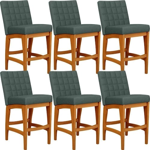 ndo muita excelência, o Kit 06 Banquetas Baixa Para Cozinha Bancada Bar Sala De Jantar 90 cm Fixa Mila L02 Linho Verde Musgo - Lyam Decor é o complemento que faltava para deixar sua casa ainda mais extraordinária. Seu encosto com costura em padrão quadriculado e assento estofados, centralizam em si uma graciosidade estonteante, sem perder todo o seu conforto. A estrutura em madeira, na cor nozes, também é digna de notoriedade, por imprimir bastante personalidade a sua decoração. Vale ressaltar ainda, o apoio para os pés que garante maior segurança à mesma.