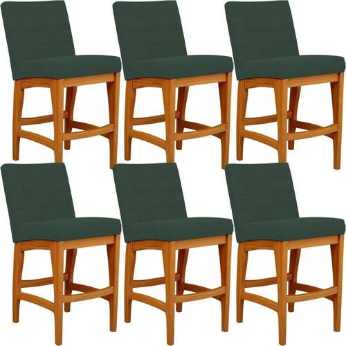ndo muita excelência, o Kit 06 Banquetas Baixa Para Cozinha Bancada Bar Sala De Jantar 90 cm Fixa Mila L02 Suede Verde Musgo - Lyam Decor é o complemento que faltava para deixar sua casa ainda mais extraordinária. Seu encosto com costura em padrão quadriculado e assento estofados, centralizam em si uma graciosidade estonteante, sem perder todo o seu conforto. A estrutura em madeira, na cor nozes, também é digna de notoriedade, por imprimir bastante personalidade a sua decoração. Vale ressaltar ainda, o apoio para os pés que garante maior segurança à mesma.