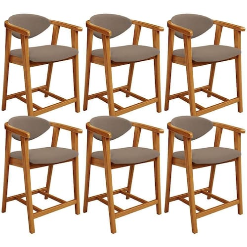 Esse kit de banquetas combina design moderno e funcionalidade, já que é ideal para cozinha, sala de jantar, bancada ou área gourmet. Além disso, são feitas com madeira de eucalipto vermelho tratado, o que garante durabilidade e sustentabilidade. Já o assento e encosto estofados com espuma de alta densidade proporcionam máximo conforto durante suas refeições ou momentos de descontração.