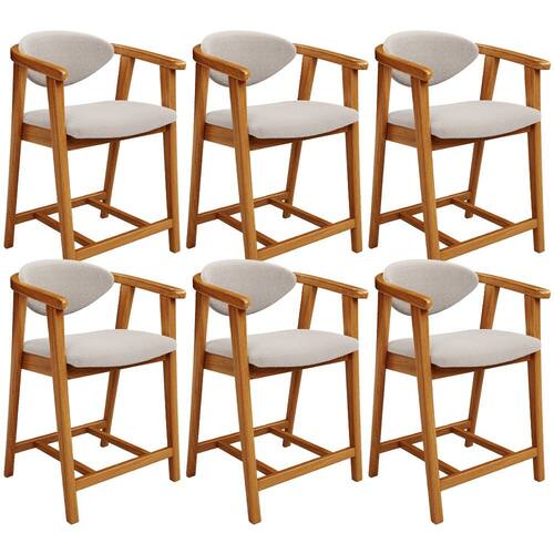 Kit 06 Banquetas Baixa Para Cozinha Sala Jantar Bancada Cecília L02 Bouclê Creme - Lyam Decor - Bege