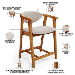Com design moderno essa banqueta é uma peça muito versátil, pois você pode aproveitá-la em diversos ambientes, desde cozinha, sala de jantar, bancada até a área gourmet ou bar e, assim, agregar o máximo de beleza e conforto. Afinal, essa banqueta de madeira se destaca pela sua estrutura robusta que resistência e durabilidade. Já o assento estofado oferece o máximo conforto, enquanto o encosto proporciona suporte ergonômico sem igual. Combinando elegância e praticidade, essa banqueta baixa com encosto é perfeita para quem deseja um toque de requinte em qualquer ambiente. Adicione um charme especial ao seu lar com essa peça indispensável. Adicione ao seu carrinho e desfrute momentos de alegria com a Banqueta Cecília!