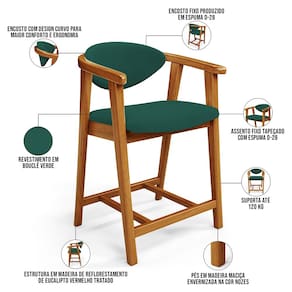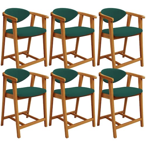 Kit 06 Banquetas Baixa Para Cozinha Sala Jantar Bancada Cecília L02 Bouclê Verde - Lyam Decor