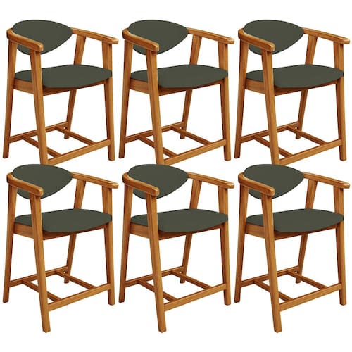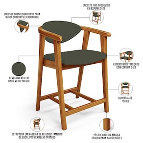 Kit 06 Banquetas Baixa Para Cozinha Sala Jantar Bancada Cecília L02 Linho Verde Musgo - Lyam Decor