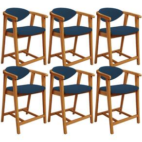 Kit 06 Banquetas Baixa Para Cozinha Sala Jantar Bancada Cecília L02 Suede Azul Marinho - Lyam Decor