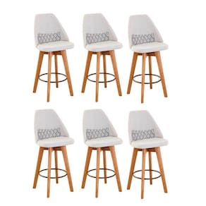 Kit 06 Banquetas Alta Maya Giratória Com Encosto Linho Bege Claro E Almofada Zigzag - Gat Magazine Banqueta Maya Giratória - GAT MAGAZINE A Banqueta Maya possui assento e pés em madeira eucalipto com sistema giratório! Os pés contam com um reforço que proporciona um suporte de peso de até 120 Kgs.O assento é revestido com espuma D-23. Além de bonita e charmosa, vai trazer para seu ambiente elegância e proporcionará conforto para sua família e amigos nos momentos de lazer.
