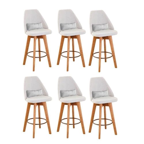 Kit 06 Banquetas Linho Bege E Almofada Sintético Branco
