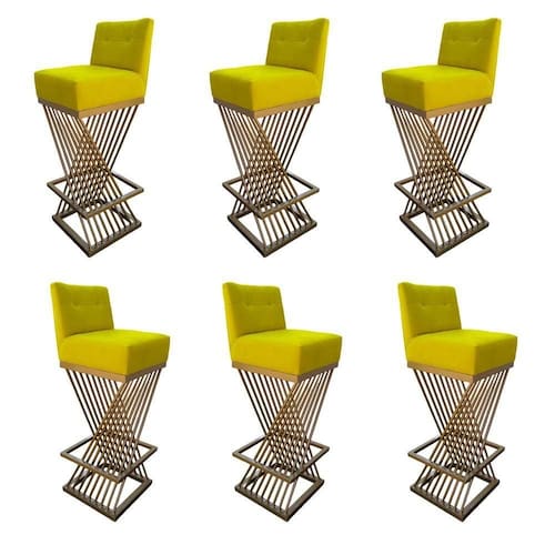 Contando com um design inovador nossa Banqueta possui um diferencial no desenho de sua Base de ferro, além de assento e encosto estofados.