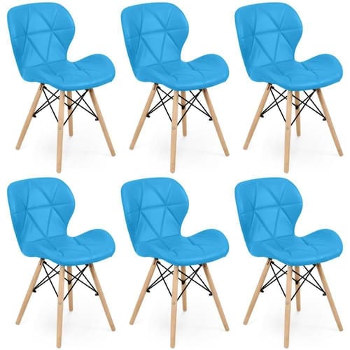 Tonalidade: Azul | Altura: 76,50 | Produto: Cadeira Slim Wood | Largura: 47 | Material da Estrutura: Madeira e Metal | Cor: Azul | Peso do Produto: 5 | Fabricante: Magazine Decor | Cômodo Indicado: Cozinhas | Acompanha Braço: Sem Braço | Necessita Montagem: Sim | batteries_required: Não | included_components: 6 Cadeiras | is_fragile: Não | part_number: 1 | number_of_boxes: 2 | model_number: 1 | item_package_weight: 5 | bullet_point#0: Esta cadeira vai dar um up na decoração do seu lar! Feitas em material de excelente qualidade, as Cadeiras Charles Eames Eiffel Slim Wood Estofada são uma ótima escolha para fazer parte de cômodos como sala de jantar | bullet_point#1: Apresentadas em , elas podem ser inseridas na decoração de diferentes estilos | bullet_point#2: Um diferencial importante destas cadeiras é que elas possuem uma base fabricada em madeira e o seu assento em madeira compensada estofada revestida em material ecológico, sendo materiais que trazem mais resistência à cadeira e um toque de estilo a mais no modelo. | number_of_items: 6 | Dimensões do item P x L x A: 76,50x47x37 | Certificação de teste externa: Não