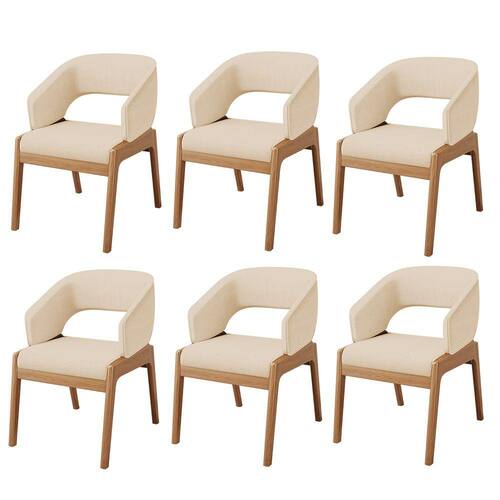Kit 06 Cadeiras de Jantar e Estar Living Estofada Lince L02 Linho Bege Escuro - Lyam Decor